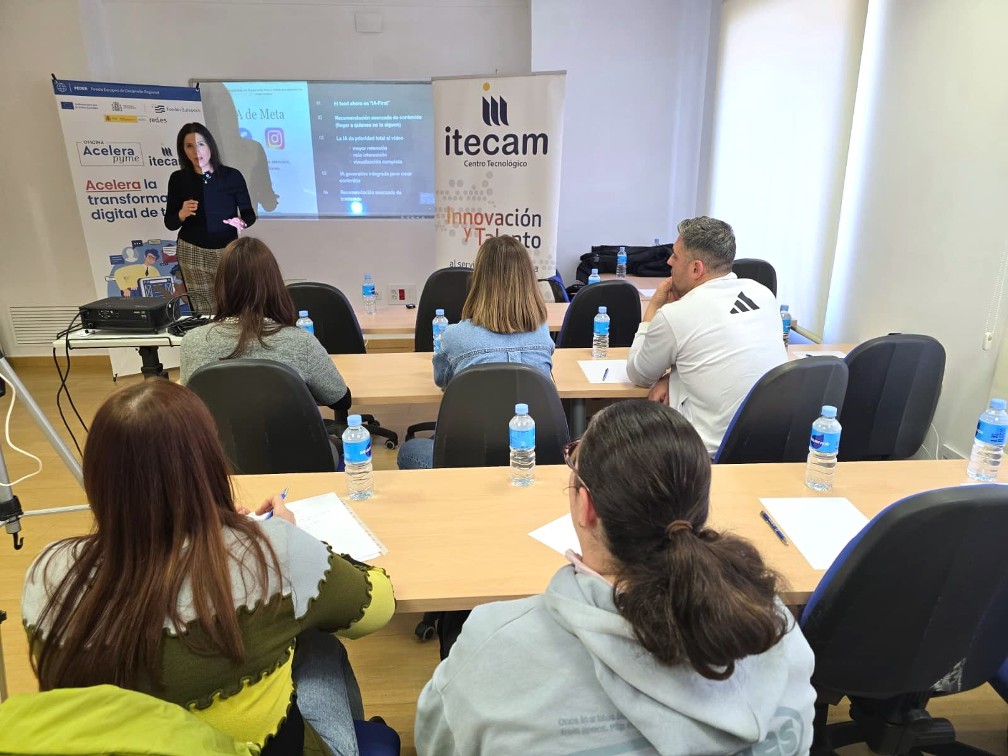 El equipo de la Oficina Acelera pyme de Itecam en Cuenca se trasladó el pasado 24 de febrero hasta la localidad de San Clemente para celebrar el taller presencial “Apps gratuitas con IA para crear contenidos que impulsan tus redes sociales”, impartido por Marta Monedero, fundadora de la agencia de comunicación Alquimista de Ideas.